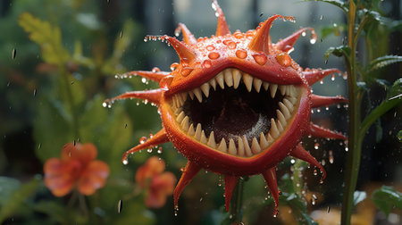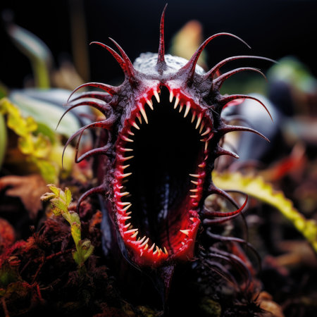Carnivorous carnivorous plant with open mouth and sharp teeth