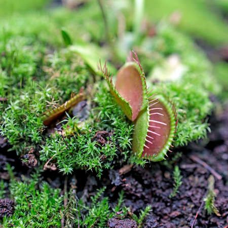 Venus flytrap or Dionaea muscipula, close up photo of carnivorous plant.