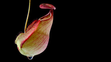 close up, macro shot of tropical pitcher plants or monkey cups isolate on black background, nepenthes mirabilis