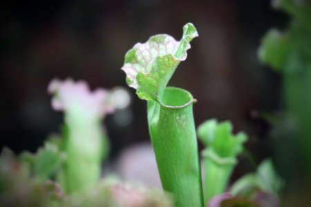 Sarracenia a carnivorous insectivorous plant on a blurred background. Pitcher plants, commonly called trumpet pitchers.