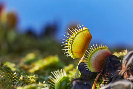 Venus flytrap (Dionaea Muscipula) with its trapping mechanism. American flowering plant with carnivorous eating habits