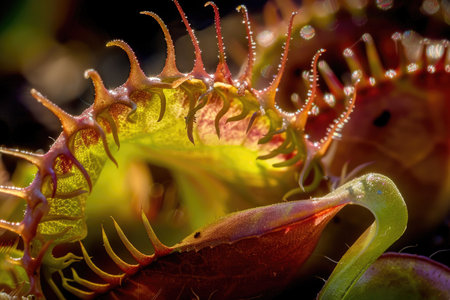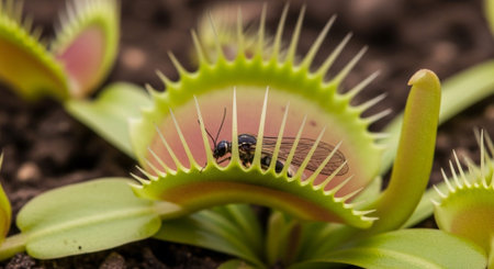 Venus flytrap, carnivorous plant with open mouth and sharp teeth