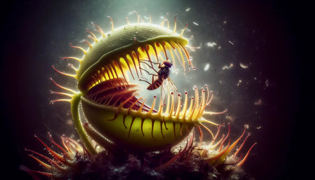 A Venus flytrap catching prey, Ai generated image