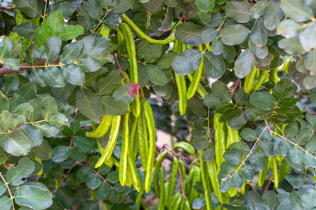 Ripe Carob Pods Ready for Harvest: Close-up Macro Photography
