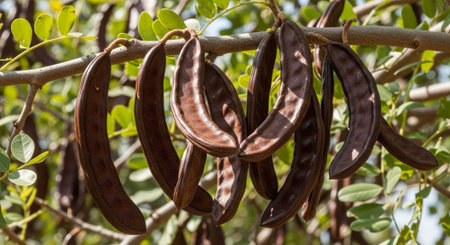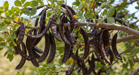 Ripe Carob Pods Ready for Harvest: Close-up Macro Photography