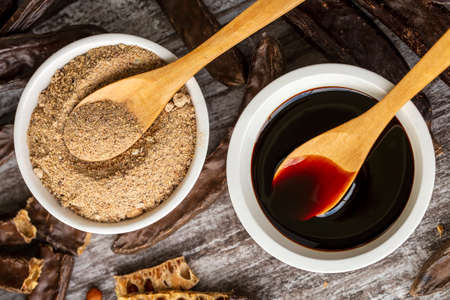 Carob pods, powder and molasses or syrup