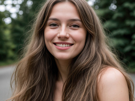 Portrait of a pretty girl with long red hair on a blurred background. Woman portrait without retouching with her natural imperfections