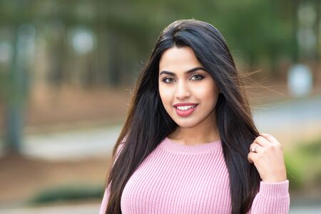 Outdoor portrait of beautiful happy mixed race biracial African American girl teenager female young woman laughing and smiling with perfect teeth in golden evening sunshine