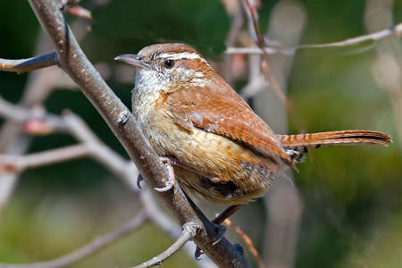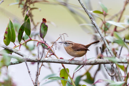 Carolina Wren bird Thryothorus ludovicianus perching on a branch during the Winter