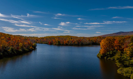 Autumn color at Sherando Lake, near the Blue Ridge Parkway in George Washington National Forest, Virginia.