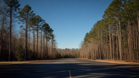 The only movement on the deserted highway is the occasional rustling of leaves as a gentle breeze blows through the trees. The stillness . AI generation