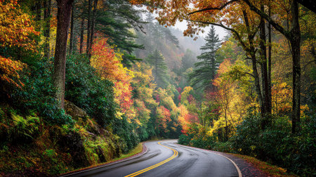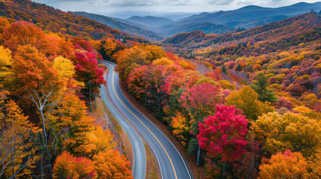 Colorful fall scenic drive along the Blue Ridge Parkway in the Great Smoky Mountains during peak fall color