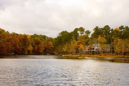 A nice home on a lakeshore in the autumn