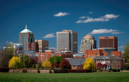 Green trees come in spring to the urban center that is Charlotte, North Carolina