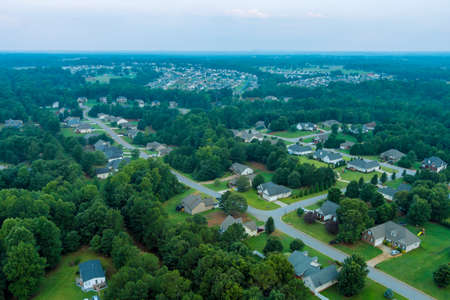 Aerial panoramic view on the residential streets Boiling Springs town of small village landscape in South Carolina US