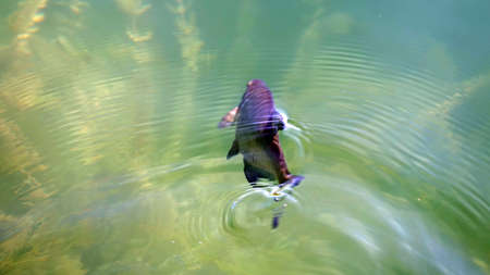 Fishing trophy in the water. Close-up of a common breath