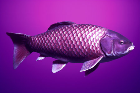 Carp fish on a purple background. Close-up. Studio photography.