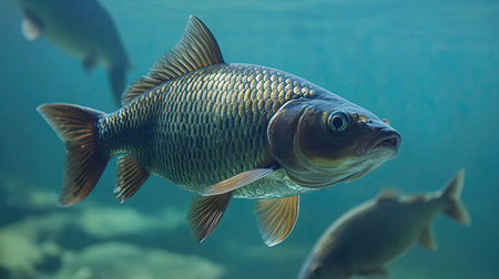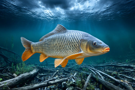 A common carp fish swimming fresh underwater photography AI Generated Image
