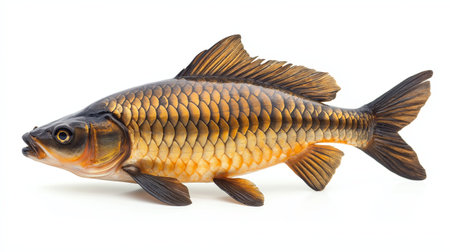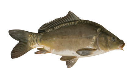 Detailed shot of a common carp on a white background.