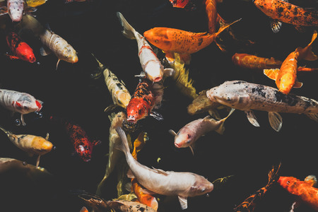 many koi fish, japanese koi carp fishes