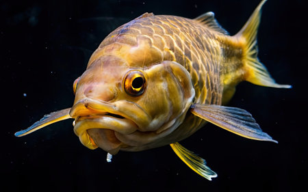 Carp fish in the aquarium on a black background, close-up