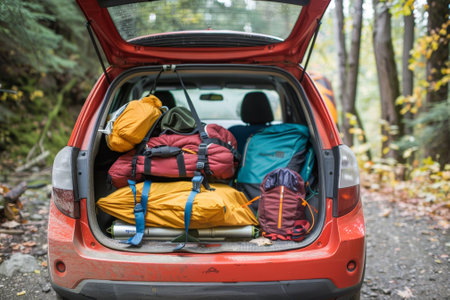Road Trip Essentials Packed in the Trunk of a Car Preparing for an Organized and Adventurous Journey Ahead