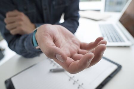 A man suffering from numbness in his hand and wrist, arthritis and occupational disease