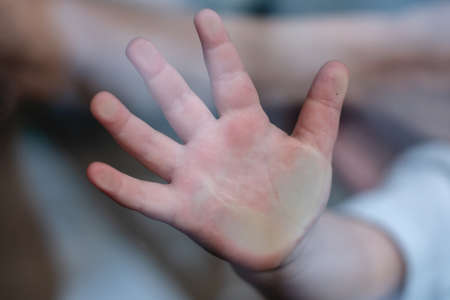 Dirty hands of worker miner are corns palms in abrasions. Concept hard work