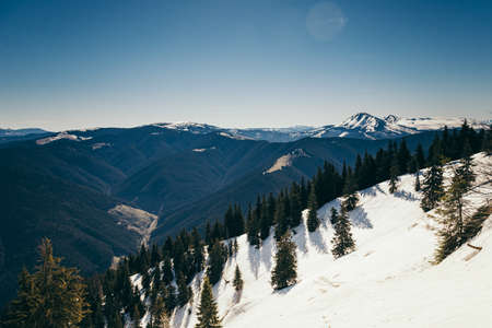 landscape view of winter ukraine carpathian mountains bukovel