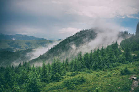 Scenic mountains landscape after rain. Carpathians of Ukraine.