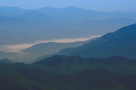Carpathian mountains summer sunset landscape with in blue colors, natural background