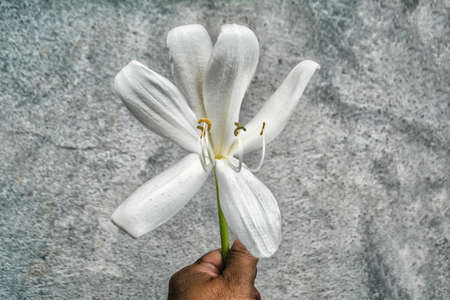 white flower in hand abstract hope concept