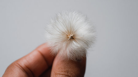 White fluffy ball in hand isolated on white background. Macro shot.