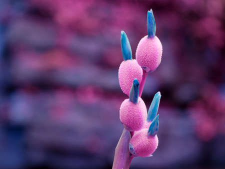 Flower fruit in pink blue mixed color presented with isolation blur background.