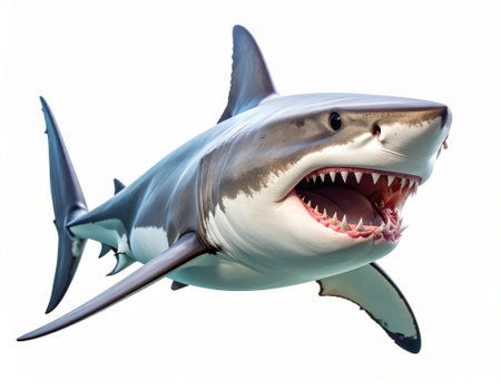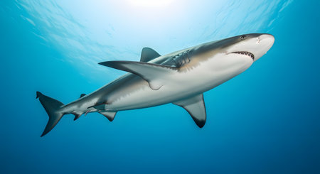 Great White Shark (Carcharodon carcharias) swimming in blue water