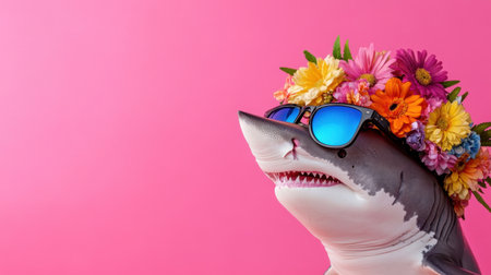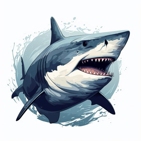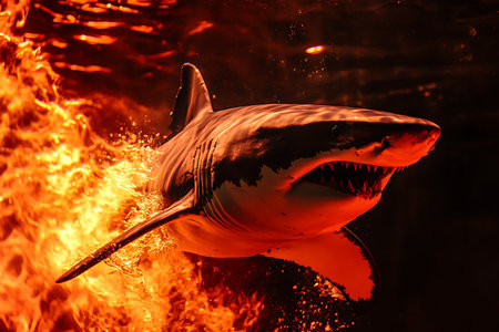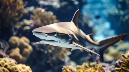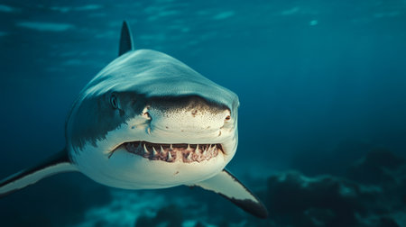 Scary shark with sharp teeth protruding from its mouth underwater world