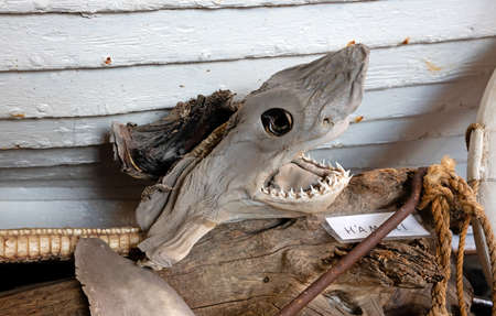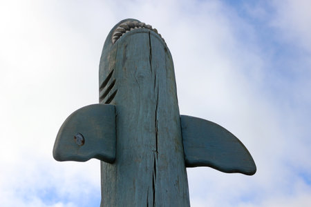 Worthing, West Sussex, England. 11th March 2020. A wooden shark is part of the Waterwise playground in Worthing.