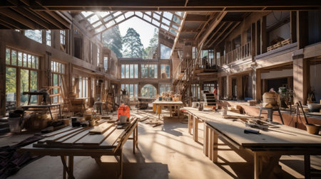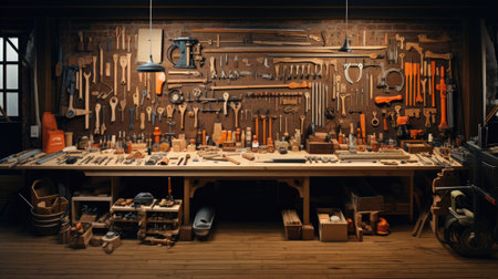 carpentry workshop with tools and supplies, ready for building project, created with generative ai