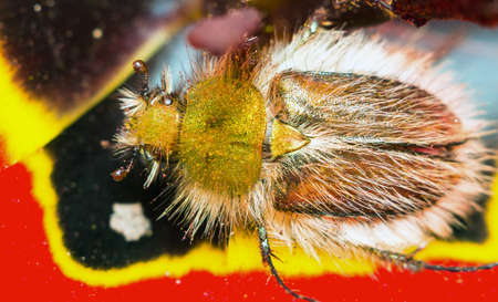 beetles are pests in the garden macro photo closeup of beetle in the colors