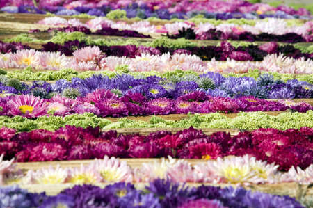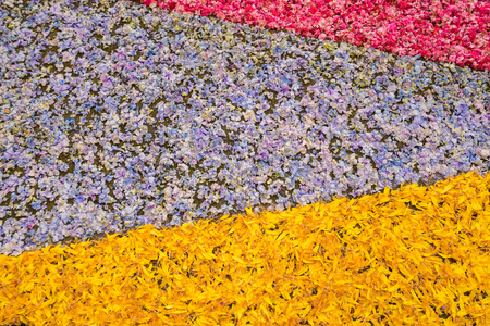 Texture of various colorful flowers placed line by line