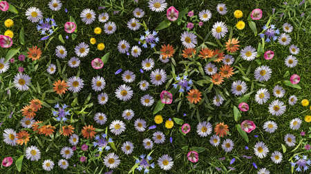 flower garden full bloom daisy meadow in sunlight environment 3D illustration