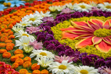 Colorful floral displays at onam festival in India, highlighting rich cultural traditions