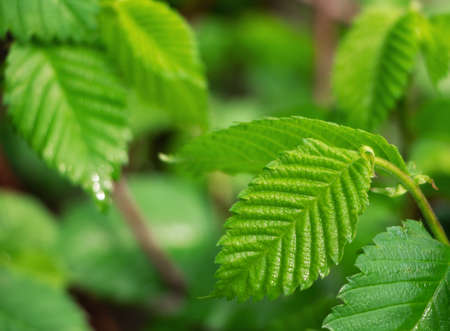 Fresh new hazel green leaves and blurred background