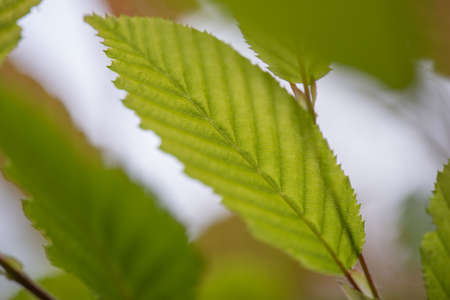 Hornbeam leaf in the sun. Hornbeam tree branch with fresh green leaves. Beautiful green natural background. spring leaves.