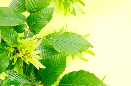 hornbeam leaves and flowers as a summer background