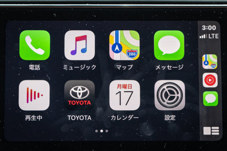 Hong Kong, China Aug 17, 2020 : Toyota Wellfire 2020 Apple CarPlay Aug 17 2020 in Hong Kong.