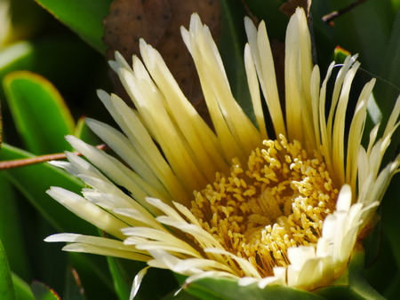 Hottentot-fig ice plant (Carpobrotus edulis) white yellowish flowers