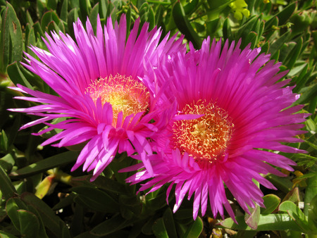 Flowers of Carpobrotus edulis, invasive plant native to South Africa