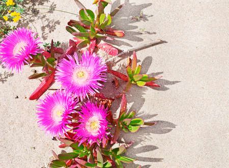 Hottentots Fig flowers on a dune sand in Sardinia