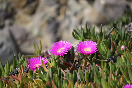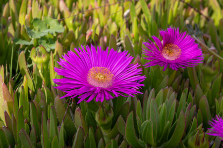 Flowers of Carpobrotus edulis, invasive plant native to South Africa